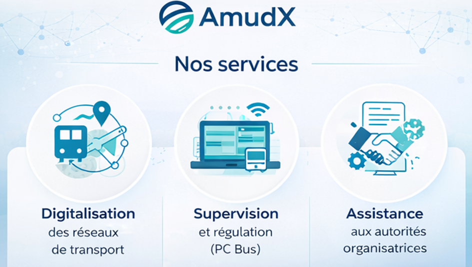 AmudX propose une offre de services dédiée à l’organisation, la supervision et la transformation digitale des réseaux de transport public.